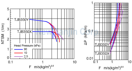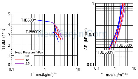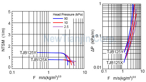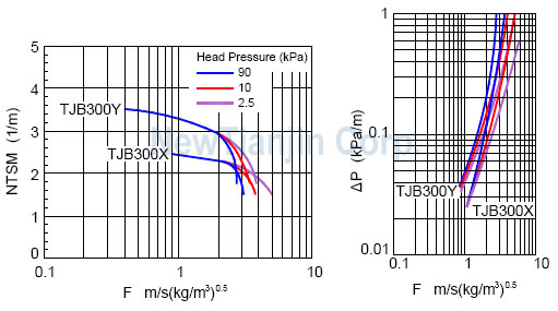 以下提供了部分金属板波纹填料的性能曲线。